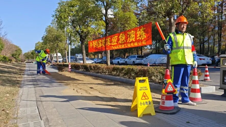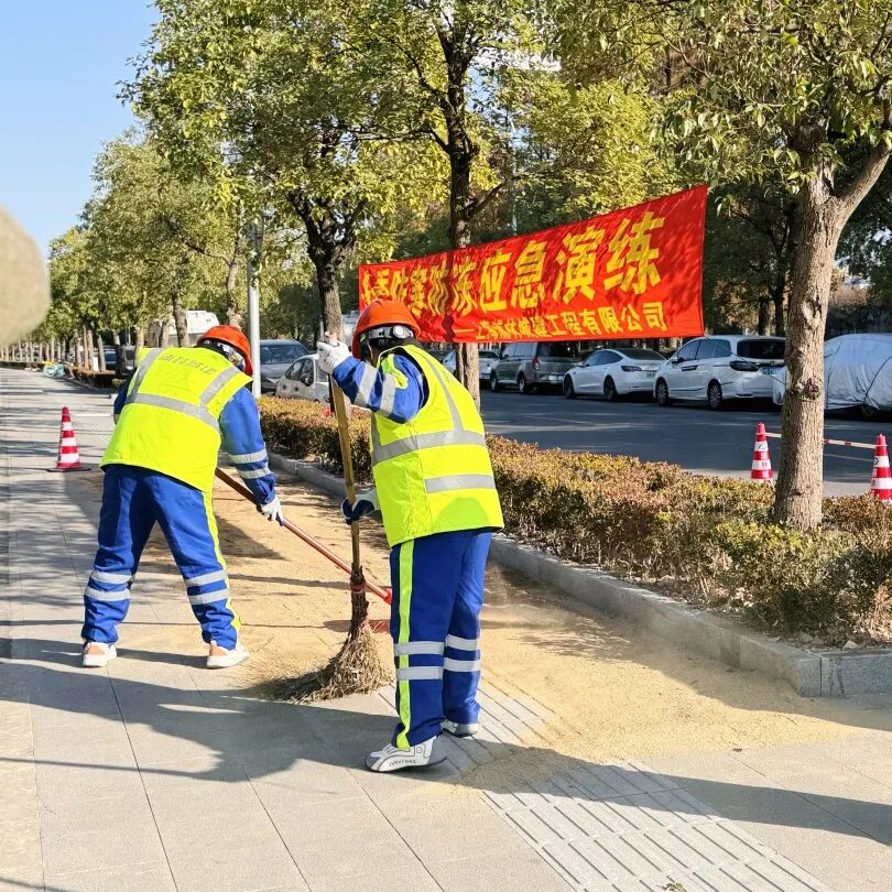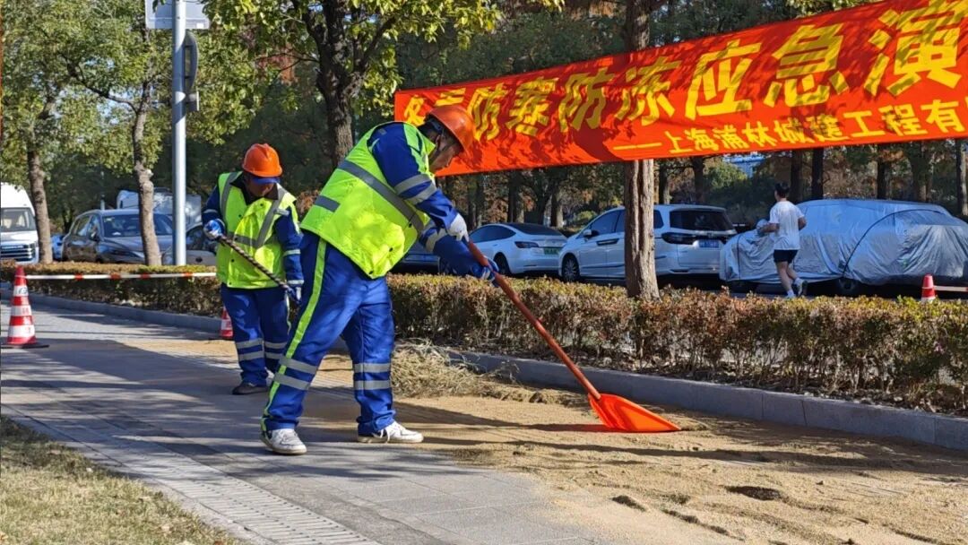 据预测,今年冬季上海或遇阶段性低温雨雪,桥面、人行道等易积冰湿滑区域成风险点。项目部提前谋划,将防寒防冻列为冬季重点,此次演练正是“早部署、早准备、早落实”的实践。